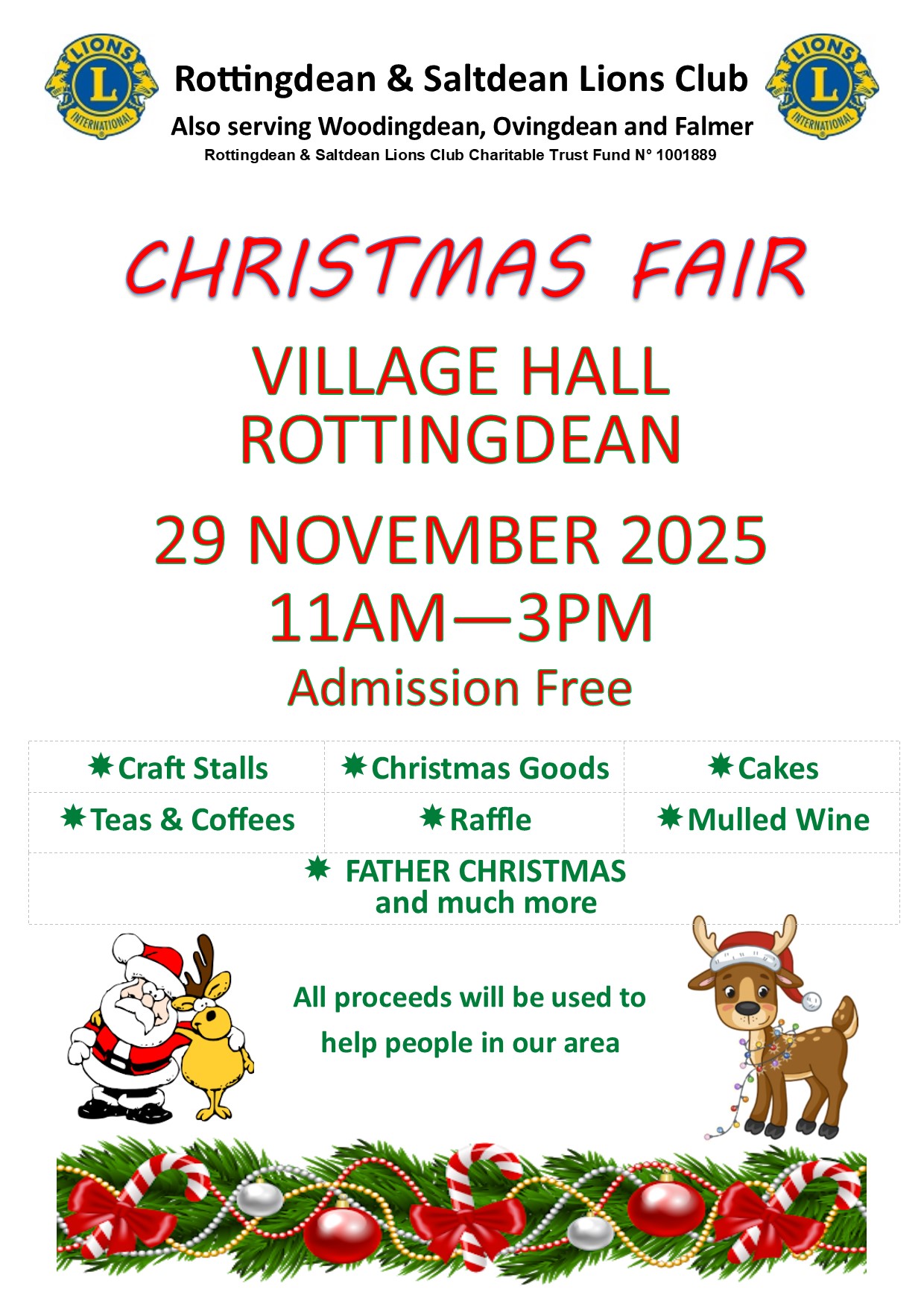 Rottingdean and Saltdean Lions are a service organisation of volunteers who raise funds by organising and staffing local events such as Rottingdean Lions Fayre, Saltdean Gala, a sponsored swim and similar fundraising activities.